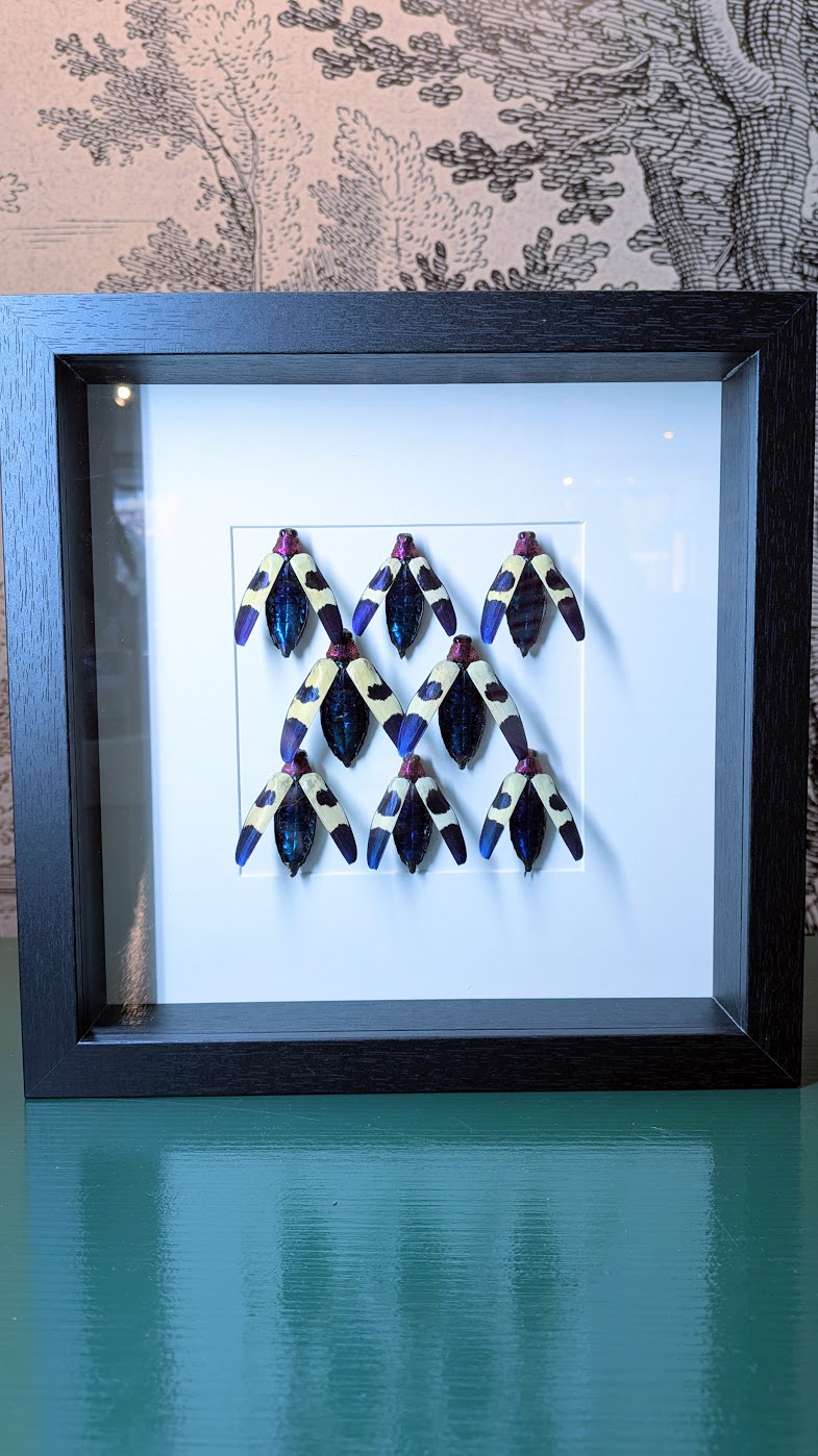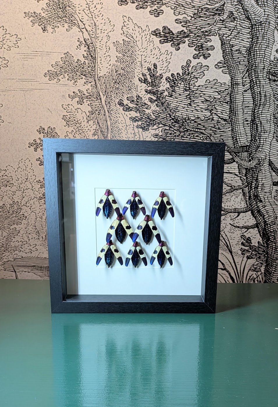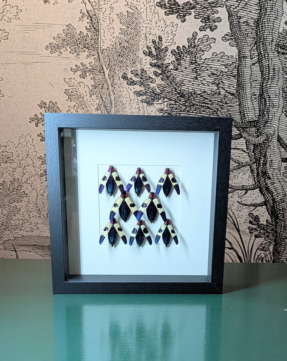 Houten kwaliteitsvolle kader met een kunstzinnige compositie juweelkevers.