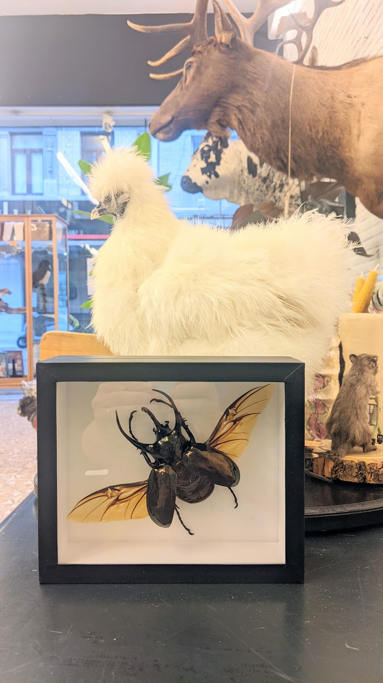 Reusachtige Atlaskever in een kwaliteitsvolle museumkader.