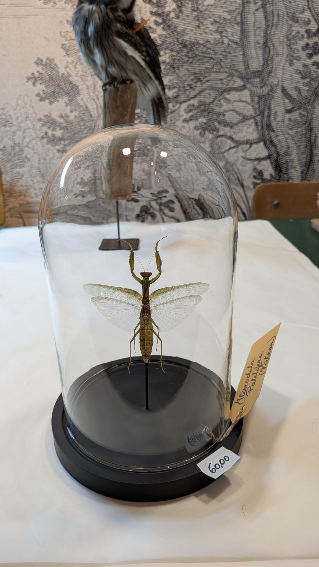 Stolp met sierlijke bidsprinkhaan.