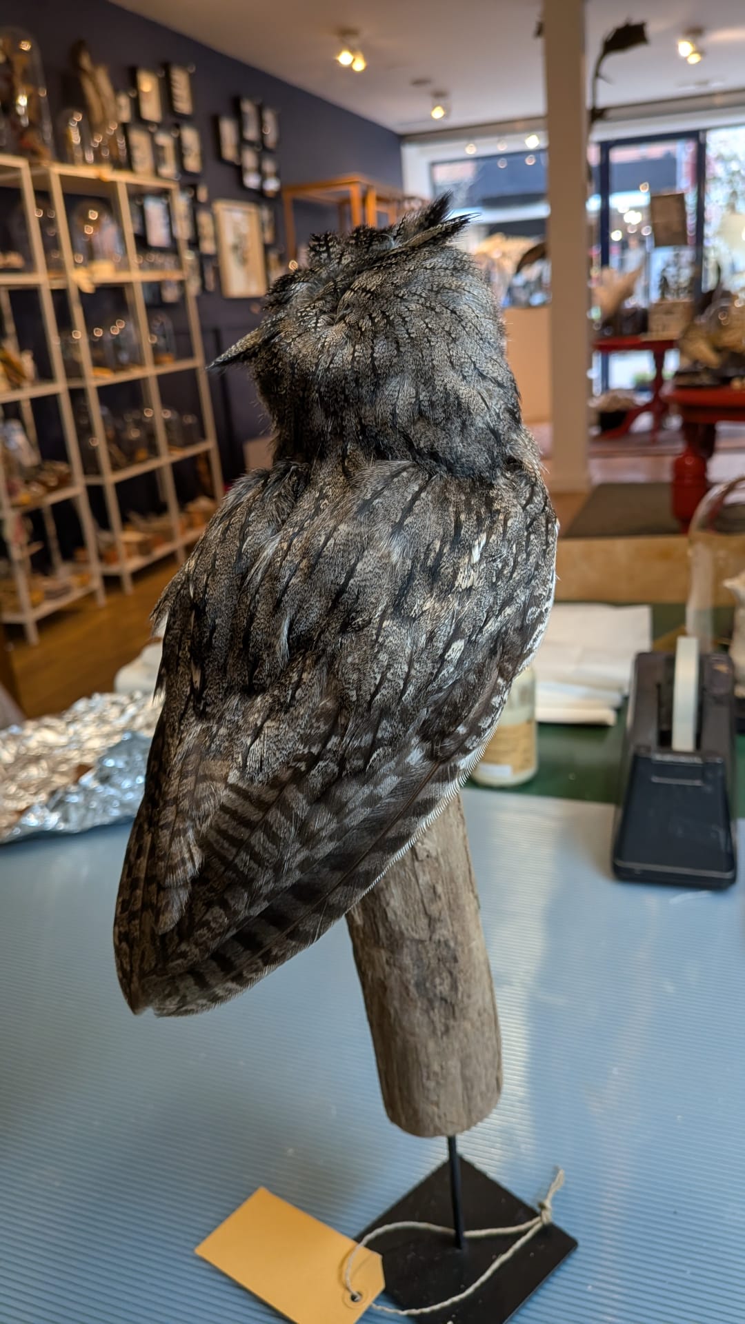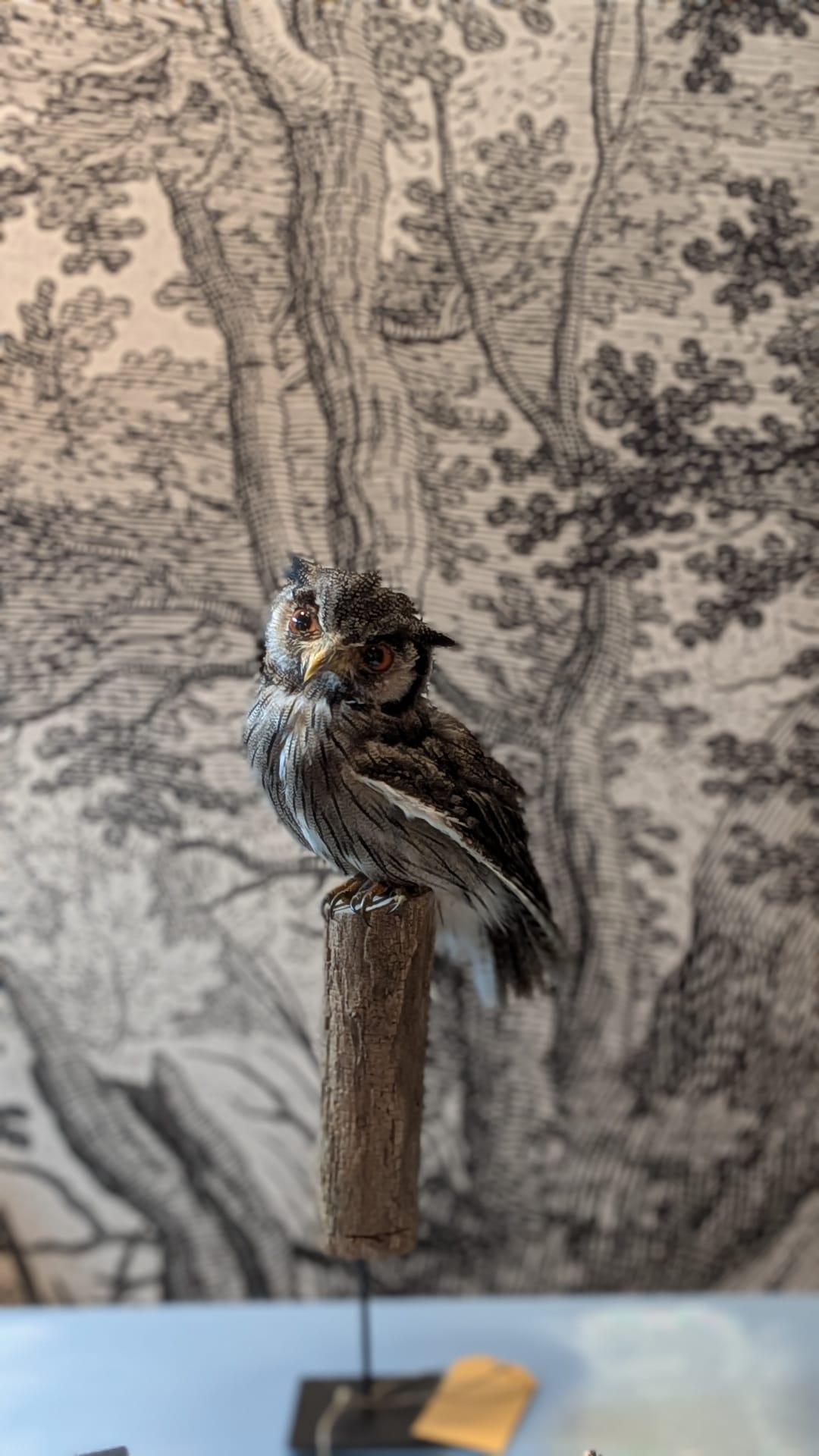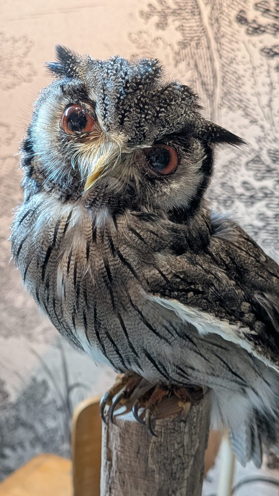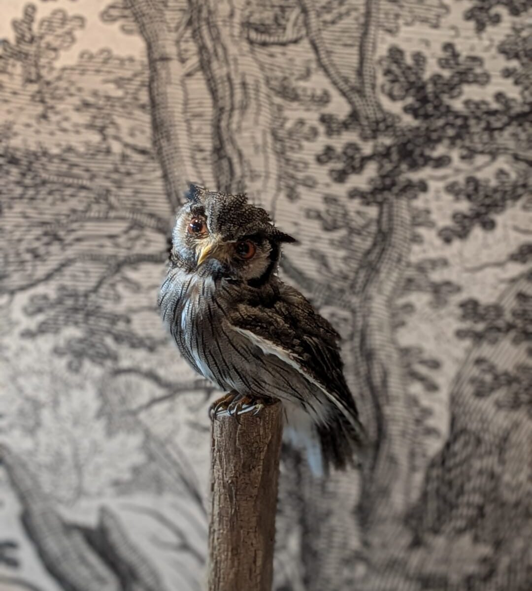 Mooi dwerguiltje uit Afrika op een stammetje. Ontzettend schattig met zijn grote ogen en oorpluimen.